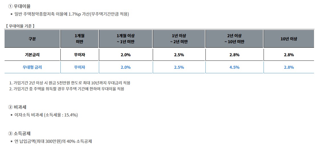 가입 후 조건을 만족하면 일반 청약 통장보다 높은 금리 혜택을 받을 수 있습니다.